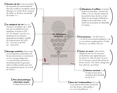 - Pour assurer la traçabilité du vin : le numéro de lot et le nom de l’embouteilleur