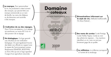 Les mentions facultatives sur les étiquettes des bouteilles de vin peuvent être nombreuses, voici les plus courantes :